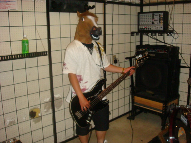 ベースより重い、HideモデルのMockingbird、透明アクリルのギターが映える、109ちゃん(Gu.)。